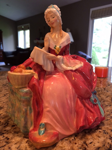 ANSWER: Your Royal Doulton “Penelope” figurine is number HN 1901. From time to time, a figurine slips through the production line with one or more of the backstamps missing. A missing backstamp does not increase the object’s value. “Penelope” is a common Royal Doulton figurine. There are numerous “Buy It Now” listings for the figurine on eBay. Values begins around $135.00 and can exceed $270.00. Of course, it is hard to imagine why anyone would pay $270.00 when he/she can buy an identical example for half the price. “Buy It Now” prices are asking prices. Exercising a “Best Offer” option most likely would result in a sell price of around $100.00. The Royal Doulton figurine secondary market was hard hit by the 2008-2009 Great Recession. Prices are depressed and not likely to increase anytime soon. A realistic secondary market value for your figurine is between $75.00 and $90.00, far less than it sold for as new.