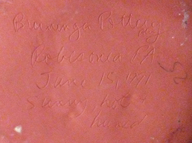 ANSWER: I first met Lester and Barbara Breininger in 1973, shortly after accepting the position as Executive Director of the Historical Society of York County [Pa]. The Society’s Gift Shop at the Golden Plough Tavern sold Breininger pottery. In addition, the Society commissioned Lester and Barbara to create a series of four plates, each plate incorporating an image from the Society’s Lewis Miller folk art drawing collection. In the ensuing years, I became friends with Lester and Barbara and enjoyed many wonderful visits to their home, the George Taylor Mansion in Robesonia, Pennsylvania. [Author’s Aside: Lester, a biology teacher at Conrad Weiser School District, and Barbara, a nurse, worked as a team. Lester gathered the clay and worked it, threw the forms, did the slip decoration, fired, and marketed the redware. Barbara did the sgrafitto decoration in the early years. Sgrafitto pieces marked “L + B Breininger” are highly sought after by collectors. Barbara’s involvement lessened as Breinnger Pottery evolved from an owner handcraft operation to a mass-production commercial enterprise.]