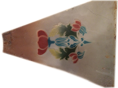 ANSWER: The generic term for your lamp is a slag or custard slag lamp. Having stated this, your eight, reverse painted, bent glass panels are not slag glass. Once a manufacturer produced the frame, it was free to choose a wide variety of glass panel inserts to put into the frame. After examining the pictures which accompanied your email, I am not certain the lamp needs a full restoration. The standard and frame appear to be in good shape with little to no break or wear problems. When considering restoration, more is less is the rule. Since the glass panels already are removed from the shade frame, start by examining the wiring and light sockets. Replacing either has little impact on the lamp’s value. Several of the major Big Box home supply stores offer a cord that closely resembles old cord. Avoid reusing an older socket plug. Replace the plug with a modern example. Resist the temptation to spray paint or alter the coloring on the standard, frame, and top. Instead, consider using a mild detergent, such as Woolite, and carefully clearing the lamp. Do a small section at a time. Clean, rise, and dry. Use a Q-tip to clean grooved areas. If you are satisfied, as I suspect you will be, stop. Do not expect the piece to look as though it just came off the assembly line. The goal is not a like-new appearance but a usable one. Do not be afraid to preserve aging quality. Give the glass panels a light dusting. Use a fine, soft bristle paint brush on the reverse painted surface. If the top surface is dirty, use the Woolite solution.