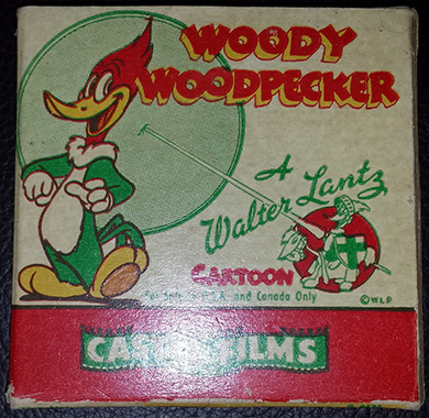 ANSWER: In order to find detailed information about your decanter, I had to search under cockatoo and parrot. P. Garnier, located in Enghien, France, exported liquors. In 1859, Paul Garnier (1832-1886) founded a Paris company to produced fruit and plant liquors. After the Franco-Prussian War, he moved his manufacturing plant to Enghien-Le Bains, home of apricot and cherry orchards. Julius Wine and Bros. became the company’s sole U.S. agent in 1877, renewing the agreement in 1964. [See: www.passionforthepastantiques.com /store/products/item/backPID /Products/categories/english/products/p-garnier-enghien-france-brandy-pitcher-c1934-38/?tt_products%5Bbegin_at%5D=570& cHash=df9b462e5b96d5fcd00642f9ab7d6abe]. I was unable to determine when P. Garnier ceased operations but suspect it was in the mid- to late 1980s. The company did sell figural liquor decanters during the “limited/collector edition whiskey bottle craze” of the late 1970s and 1980s. The mark on your decanter indicated it was made by St. Clement, a French pottery firm located in Barbontine. The company ceased operations around 1930. The high-gloss glaze is a majolica type. An internet seller dates the bottle from the 1920s, citing a reference on page 42 of Maryse Bottero’s “Pichets en Barbotine,” published by Charles Massin in October 2000. The dealer is asking $495.00. WorthPoint.com is a reality check, in this case providing a list of sell through versus asking prices. Examples sold on eBay in February 2017 for $30.00, in October 2015 for $24.97, in June 2013 for $50.00, in January 2013 for $112.40, and $64.99 in December 2011. What does this mean in respect to the value for your example with the labels still present? Think $35.00 to $40.00. Consider approaching the dealer asking $495.00 and offering to sell the bottle you own to him for $150.00. My best guess on his response is: “Sorry. Not interested.” QUESTION: I have a Castle Films 8mm film of a Woody Woodpecker cartoon entitled “Hollywood Matador.” The 3” x 3” box contains a colorful image of Woody. This belonged to my father who passed away in 1959. There is no date on the box, so I have no idea how old it is. Please tell me about this if you can. – SK, Email Question