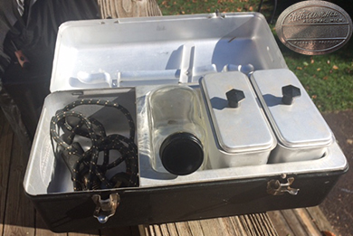 ANSWER: In 1814, Samuel Hill established a utilitarian pottery company in New Brunswick, New Jersey. The company made earthenware drainage pipes and pots. When Samuel Hill died in 1858, Abram Fulper purchased the firm. Changing the name to Fulper Pottery, Fulper made an assortment of stoneware products. Abram Fulper’s sons continued the company, making products under the brand “Fulper Bros.” or “Fulper Bros. & Co.” In 1899, William Hill Fulper incorporated the company as the Fulper Pottery Company. The company made fire-proof cookware and storage Jars. The Gem-Proof Filter, a water cooler, was one of its most successful products. William H. Fulper II was instrumental in introducing art pottery at Fulper. Around 1900, master potter John Kunsman produced hand thrown jugs and vases with a solid color glaze. Pieces were exhibited at the 1904 Louisiana Purchase Exposition. Fascinated by Chinese glazes and shapes, William Fulper was determined to reproduce them. He enlisted the help of Dr. Cullen Parmell of Rutgers University. Many of the glazes developed by Parmell were difficult to mass produce. In 1910, Martin Stangl joined Fulper and developed a line of Vasekraft glazes and shapes, which included lamps. Fulper collectors date Fulper Art Pottery from this period. Fulper won a gold medal at the 1915 Panama-Pacific International Exposition in San Francisco. Pieces made after 1910 were molded. Because Fulper experimented with a wide variety of glazes, dozens of glazes were used on the same mold. Pieces produced in the 1920s tend to be of higher quality due to less production pressures. After World War I, Fulper Art Pottery shifted toward English and Spanish Revival styles. In the 1920s and 1930s, Fulper Art Pottery changed focus again by creating designs and glazes that appealed to Art Deco, classical, and primitive tastes. Production of Fulper Art pottery ceased in 1935. [For additional details, see http://stanglpottery.org/welcomefulper.htm] Your crescent moon vase was not exhibited at the 1915 Panama-Pacific Exposition. Fulper used the label on its pieces to capitalize on its winning the gold medal. The label is important because it dates the production of your piece as post-1915. Based upon a photograph of Lot #30 of an October 26, 2013 Rago Arts auction, the crescent moon vase came in two sizes, one of which was shape 666. Your example has a crystalline green glaze. The black streak on the back is deliberate. Glazers were given a great deal of latitude when glazing a piece. The secondary market retail value for your Fulper crescent moon vase is between $150.00 and $200.00 – not bad for an $8.00 box lot find. QUESTION: I recently purchased a metal Electrolunch box made by the Electrolunch Co. of Algonac, Michigan. The inside has four sections -- two with a metal container, one with an oval glass jar with a metal cap, and one empty. There is a cord in the empty section. There appears to be a device on the lid to use to wrap the cord around; hence, the fourth section was most likely empty. What can you tell me about the piece? – BW, North Coventry, PA, Email Question