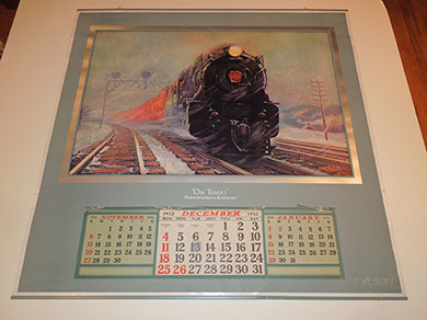 ANSWER: I met several individuals who purchased and restored or adapted railroad rolling stock during my career. I never met anyone who bought a railroad tunnel. At first, I though you were pulling my leg. Research confirmed the existence of the abandoned Pulpit Rock tunnel and that it is owned privately. It certainly is a neat thing to own but awfully difficulty to move. Your husband’s father’s collection of more than 15 Pennsylvania Railroad calendars has collecting value. Using a base value of $75.00 each, the collection is worth $1,125.00. More about this later. The three images that you sent indicate some calendars that have the full date pad and others are missing a portion or all of it. The full date pad is critical to achieving maximum value. One picture shows a calendar whose outer border has jagged edges. Although a defect, this is minor provided the jagged edge only impacts the border and not the calendar image. Careful matting can hide this damage and enhance the presentation of the calendar. Age is a factor – the older the calendar, the more valuable. The illustrator and scene also impact price. Grif Teller was the artist of the 1938 calendar. Teller apparently did most of the artwork for the calendars your husband’s father collected. Liveauctioneers.com lists a 2012 sale result of $130.00 for a 1938 calendar. Only the December date pad remained on the calendar. When checking auction prices, it is important to check the date. I also checked eBay. As always, I found an “I would rather die with my object than sell it” individual asking $300.00 for a framed 1940s calendar. At that price, he will take it to his grave. The Railroad Museum of Pennsylvania is located in Strasburg, Pennsylvania. If you wish to donate the calendars, contact it. However, ask this question early in your discussion: Do you already have examples of these calendars in your collection. If the answer is yes, think twice about donating them. My advice is to sell the collection. Insist that the buyer purchase the full collection. Do not allow a buyer to “cherry pick” (take the best examples) the collection. If this happens, you will be stuck with the hardest to sell examples. Railroad collectors hold regional and state gatherings. Ask your local librarian to help you locate meets nearest you. Take your calendars or pictures of them to the meet and see what collector/dealer interest you can generate.
