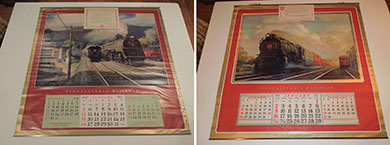 ANSWER: Before talking about your bill specifically, I turned to the “Standard Catalog of United States Paper Money, 35th Edition,” edited by Maggie Judkins and published in 2016 by KP [Krause Publications], an imprint of F + W Media, to refresh my memory on currency grading. Paper currency grading is far more tolerant of defects than the grading criteria used in other collecting categories. Note the following: “Extremely Fine (XF): very attractive note with light handling. May have a maximum of three light folds or one strong crease. “Paper is clean and bright with original sheen. Corners may show only the slightest evidence of rounding. There may also be the slightest sign of wear where a fold meets the edge. “Very Fine (VF): An attractive note but with more evidence of handling and wear. May have a number of folds both vertically and horizontally. “Paper may have minimal dirt, or possible color smudging. Paper itself is still relatively crisp and not floppy. “There are no tears into the border area, although the edges do show slight wear. Corners also show wear, but not full rounding.” Based upon my examination of the pictures that accompanied your email, a grade of XF is a possibility. Because I think conservatively, I am assigning a grade of VF. The red asterisk (star) before or after a serial number on small size banknotes indicates the first note bearing this number was a misprint. This misprint note is destroyed. A new second note with the same serial number with the asterisk added is printed. If the note is the first or last in a series, an asterisk is used in lieu of eight zeros. It is estimated that between 1.0 and 1.4 percent of all printed notes are star notes. [Author’s Aside: I was astonished by how high this number was. I prefer not to know the cost involved in correcting these misprints.] Because of their scarcity, small bills with an asterisk before or after the serial number, especially in uncirculated condition, command a premium among collectors. Judkins values a star Series 1928 F two-dollar bill at $75.00 in Fine condition and $125.00 I Extra Fine condition. This being the case, the safe assumption is that an example in Very Fine condition has a book value of $100.00. Book value is a retail value. Get value is entirely different. Because of its low value relatively speaking, I do not recommend paying to have it graded. Because of competition and supply, coin and currency dealers work on relatively short margins. A dealer should pay you between 50 and 60 percent of book. A private collector might go as high as 75 percent of book. The good news is that your two-dollar bill always is worth two dollars, should all else fail. QUESTION: My husband’s father saved Pennsylvania Railroad calendars from 1933, the year my husband was born, until 1951. The calendars measure 28 1/2-inches square. They feature illustrations of Pennsylvania Railroad rolling stock. My husband’s father worked all his life for the Reading Railroad, mostly as a station agent, and bought the Pulpit Rock Railroad tunnel on the Reading. Do these calendars have value beyond their sentimental value? If yes, what is the best way to dispose of them? I understand donation is one option.-- PA, Hamburg, PA, Email Question