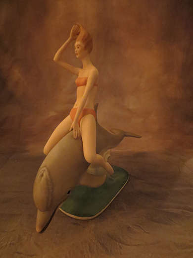 ANSWER: Once or twice a year I receive an email and a half a dozen times or more at appraisal clinics, I encounter violins attributed to famous seventeenth century violin makers. Stradivarius is the most common name. I searched past “Rinker on Collectibles” columns to determine when I last answered a similar question. Much to my surprise, it was column #731 in 2001. The following is excerpted and updated from that column: “The label provides all the clues necessary to determine the age of your violin. It is twentieth century in origin and possibly as late as the 1910s or 1920s. The 1891 McKinley Tariff Act required that goods imported into the United States be marked with their country of origin. The marking did not have to be permanent. Paper labels were acceptable. “The following information is found in my ‘Official Price Guide To Flea Market Treasures, Fifth Edition’ (House of Collectibles, 1999): In the late 19th century inexpensive violins were made for sale to students, amateur musicians, and others who could not afford an older, quality instrument. Numerous models, many named after famous makers, were sold by department stores, music shops, and by mail. Sears, Roebuck sold ‘Stradivarius’ models. Other famous violinmakers whose names appear on paper labels or in printing inside these instruments include Amati, Caspar DaSolo, Guarnerius, Maggini, and Stainer. Lowendall of Germany made a Paganni model. “All these violins were sold through advertisements that claimed that the owner could have a violin nearly equal to that of an antique instrument for a modest cost; one ‘Stradivarius’ [model] sold for $2.45. The most expensive violin cost less than $15. The violins were handmade, but by a factory assembly line process.” If these early twentieth-century violins are properly cared for, they develop a rich mellow tone. The key is playability, something that can be determined by personnel at a local musical instrument store. If playable, the value of your violin is between $300.00 and $350.00. If restorable, it is worth between $100.00 and $150.00. If not, it is a wall hanger. I confirmed these prices using a “sale date” search on WorthPoint.com. These prices include a bow. Unstrung Bausch bows bring between $20.00 and $30.00. Restrung and playable, the price for a Bausch bow jumps to $75.00 to $90.00. Selling a twentieth century violin without a bow lowers its value. QUESTION: I recently paid $40.00 for a Laszlo Ispanky sculpture at an estate sale. The sculpture features a bikini clad woman riding the back of a dolphin. The only markings on the bottom are a replica signature of Ispanky, a printed version of his name, and number 15 of a limited edition of 250. I want to sell it. Can you help me name and date the piece? Is there any internet database that can help? – WM, Grand Rapids, MI, Email Question.