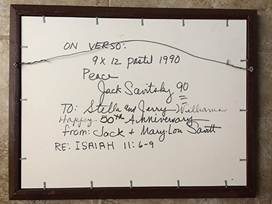 QUESTION: My husband I acquired a Jack Savitsky folk art drawing featuring a lion and lamb sitting together. The notation on the back reads: “9 x 12” pastel 1990 / Peace / Jack Savitsky 90 / To Stella and Jerry Williams / Happy 50th Anniversary / from: Jack & Mary Lou Savitt / RE: ISAIAH 11: 6-9.” What is it worth? C, Blandon, PA, Email Question