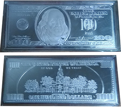 ANSWER: Carl Hedstrom, E. Gustaf Hedstrom, Knute Hedstrom, Wilfred Shuffleton, and Walter Beaman founded the Hedstrom Company in 1915. Located in Gardner, Massachusetts the company made baby carriages and hoods. In 1922, a merger between Hedstrom and Union resulted in the creation of the Hedstrom-Union Company. In 1928, Hedstrom-Union acquired Children’s Vehicle Company of Templeton. Hedstrom-Union leased a plant in Fitchburg in 1936. In 1950, labor difficulties resulted in Hedstrom-Union closing its Massachusetts factories and moving to Dotham, Alabama and Bedford, Pennsylvania. Given the above, your assumption that your tricycle dates between 1936 and 1950 is correct. Because of World War II, you can eliminate mid-1941 through 1945. I favor a 1946 to 1950 date based on the identification plate topography. Asking prices from dealers selling unrestored Hedstrom-Union Co. tricycles over the past five years range from $60.00 to $75.00. These prices appear high, especially given the amount of work a restoration involves. Speculating on a value after restoration is difficult. The quality of the restoration impacts the price. A well done, amateur restoration is worth a quarter or less than a professional restoration to “factory new” specifications. The desirability of your tricycle is a value factor. During the same period as your tricycle, Hedsrom-Union made a streamlined modern tricycle that featured batwing handle bars and a half-circle wheel frame. This is the Hedstrom-Union tricycle model that collectors seek. Compared to its design, your tricycle is “ordinary.” Hedstrom still makes tricycles. The company is best known among collectors for its 1980s line of character tricycles such as Care Bears and Strawberry Shortcake. QUESTION: I own a .999 fine silver bar that measures six inches in length and 2 1/2 inches high and contains the images of a $100.00 bill on the front and back. The bill is dated 2005. On the back, there appears to be a “G” mint mark. It is sealed in a plastic casing. I do not know the weight. What is the bar worth and where can I sell it? – R, Altoona, PA, Email Question