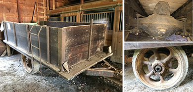 ANSWER: You own a Chuck-a-luck, also known as a birdcage, gambling device. The game has a long history tracing its origin back to grand hazard and sic bo casino games. Although found in casinos, it is more likely found in carnivals and as a charity fund raising device. Chuck-a-luck was a common game in English pubs where it was known as Crown and Anchor. Rather than have numbers, the dice were marked with an anchor, crown, club, diamond, heart, and spade. The game first appeared in the United States around 1800. By 1900, the game was referred to as Birdcage. Lazar plays it in the James Bond movie “The Man with the Golden Gun.” Your question brought back some wonderful adolescent memories. Each year when I lived in Hellertown, Pennsylvania, first the American Legion and then the Dewey Fire Company held a summer carnival in Dimmick Park, located across from the community swimming pool. The American Legion carnival is past history. The Dewey Fire Company held its 102nd Annual Carnival in 2018. The carnivals contained multiple games of chance utilizing a variety of devices such as wheels and Chuck-a-luck machines. Not allowed to participate at my young age, I settled for throwing softballs at 78 rpm records and milk bottles. Of course, the real treat was the food. Almost every small town had one or more carnivals each summer. Few owned the gambling equipment that was used at them. Rather, they rented it. W. J. Robinson was one such supplier. Although I found several Chuck-a-luck machines on the internet that were exact matches to the one you own, none of the listings provided any information about the manufacturer. I also found no information about W. J. Robinson, albeit a trip to the Reading Library or Berks County Historical Society would most likely provide some details. Because Chuck-a-luck is considered recreational or social gambling, local law enforcement tends to ignore its use. A Chuck-a-luck owner still needs to check local and state laws. It is possible to buy modern Chuck-a-luck devices for under $75.00. Mid-20th century examples sell on the secondary market between $225.00 and $300.00 depending on style and condition. QUESTION: In 2017, I acquired a small farm in Medina County, Ohio. The purchase included an “antique grain wagon” that appears to have been constructed on a rear transaxle of an old truck. The cast iron wheels have solid rubber tires. I am trying to determine the car from which the transaxle came. Can you help? – JV, Medina County, OH, Email Question