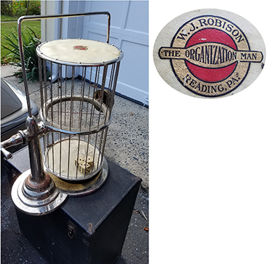 ANSWER: The answer is no. Box lots and lot groups are a standard auction practice. Given the overhead cost and time, auctioneers can no longer sell individual items, especially when their potential value is only a few dollars. Mid-range auction companies now have an estimated $100.00 to $300.00 minimum hammer price per lot. It is common for box lots and lot groups to contain ten or more items. In October 2018, Vogt Auctions in San Antonio sold as a single lot a group of 39 Hummel figurines. The hammer price was $700.00. Once the buyer’s penalty and sales tax were added, the final purchase price was close to $800.00. It took the auctioneer less than a minute to sell the lot. Imagine how much time and paper work would have been involved in selling each Hummel separately. There is no way the auctioneer could have held up all 39 Hummel figurines at the same time when selling the lot. What should you have done? First, after previewing the lot, you should have approached the auctioneer to ask if he/she would be willing to remove the Old Reliable Coffee advertising premium and offer it separately. To be fair to the auctioneer, you needed to provide the auctioneer with a reasonable opening bid, in this instance $10.00, as an incentive. If the auctioneer is hesitant remind him about the amount you spend at his/her auctions. Also, helping an auctioneer getting bids started, even though you may not buy the item, does not go unnoticed. It also can result in a quick hammer on lots you do wish to buy. Second, when the postcard lot came up for sale, you should have yelled out: “does the lot also contain the Old Reliable Coffee advertising premium?” As a courtesy, the auctioneer has an obligation to respond. Auctioneers do not like when this happens because it slows the bidding pace. Yet, auctioneers represent two parties – the buyer and the seller. They should provide equal service to both. Third, the problem with lot groups is that there may be only one item of interest to a buyer. When the lot price goes beyond what a person is willing to pay for that single item, they drop out of the bidding. When this happens, do not hesitate to go to the successful bidder and inquire about the item of interest. As you discovered, the person who bought the lot was more interested in the postcards than the advertising premium. Be careful not to overpay. WorthPoint.com has a listing for an Old Reliable Coffee drawing book for children premium that sold for $12.50 in December 2013. Given the fact that the example you bought has the tracing complete and an owner’s name written on the back, the $20.00 you paid is on the high side. Auction fever does not occur only during bidding. “I just got to have it” is an invitation to financial disaster. QUESTION: I recently acquired a cylindrical wire cage that has three dice in it. It is attached to a frame that allows the cage to be flipped over. On the top of the cage is a decal that reads: “W. J. Robinson / The Organization Man / Reading, PA.” I also have the case that is used to transport the device. What is the history of my device and its secondary market value? –KO, Reading, PA, Email Question